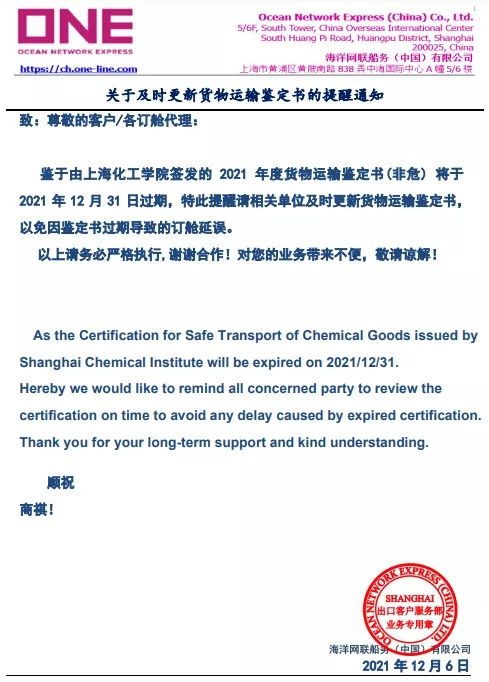 关于及时更新货物运输鉴定书的提醒通知